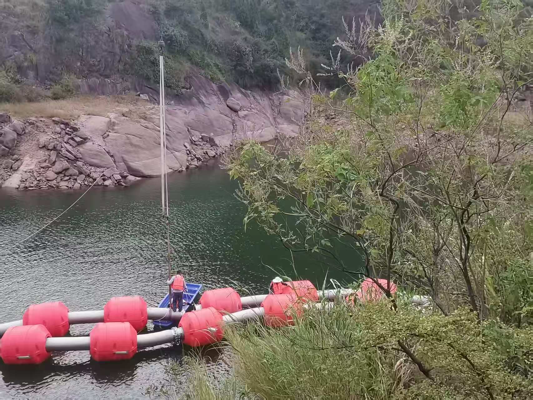 3. 浮管式:HDPE管或鋼管配浮筒漂浮水面,最長(zhǎng)可達(dá)800米,適用于河床平緩、取水點(diǎn)遠(yuǎn)的水域。